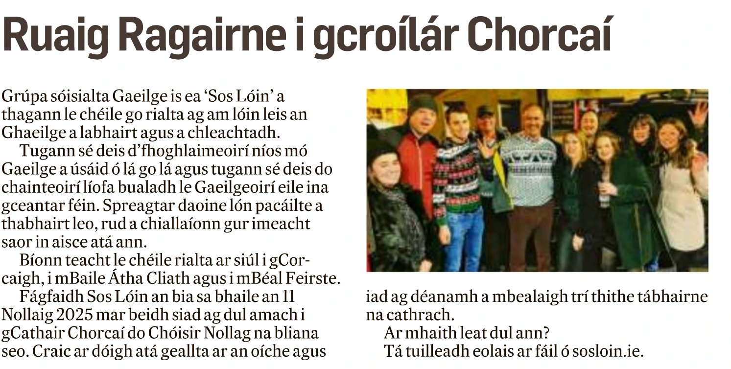 Is deis iontach é Sos Lóin chun feabhas a chur ar do Ghaeilge, nó do chuid Ghaeilge a úsáid, pé leibhéal atá agat.